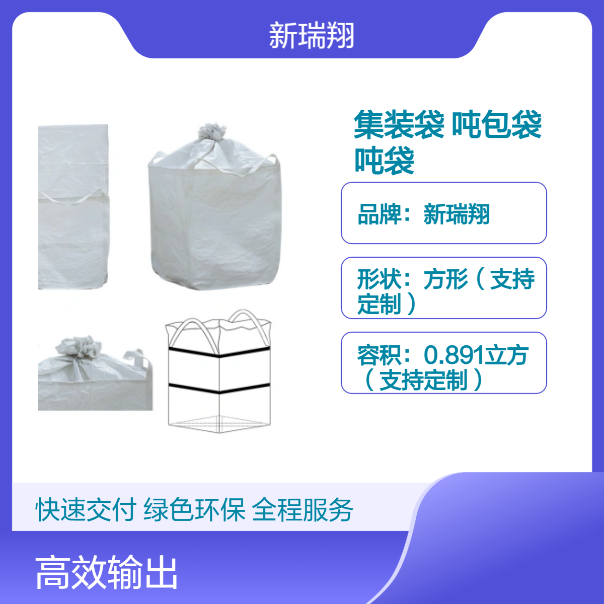 新瑞翔牌的新瑞翔吨包定制内涂膜绿色尺寸加厚集装袋饲料颗粒太空袋产品:估价:15.26,规格:白色,产品系列编号:白色 发布日期:2025-4-15