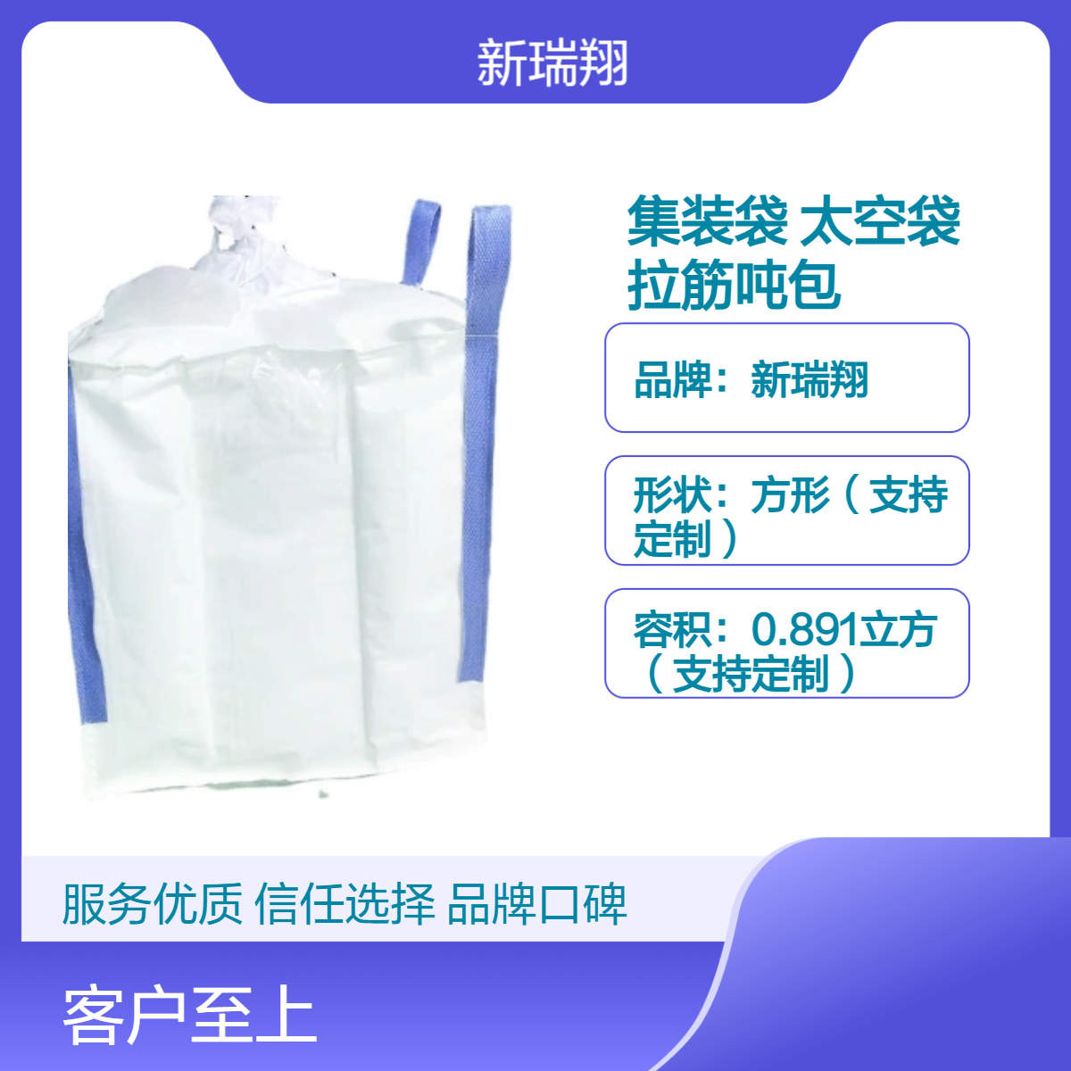 新瑞翔牌的新瑞翔托底大口集装袋散装物料包装太空袋定制拉筋吨包防水裙口产品:估价:14.50,规格:白色,产品系列编号:白色 发布日期:2025-4-15